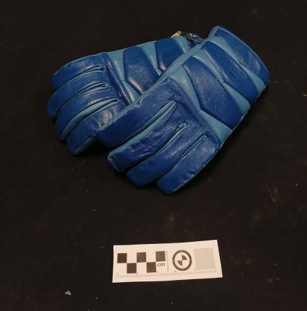 Ett par blå vinterhandskar.