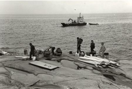 Baksidetext: Lotsföringskontoret (?) transporterar virke till Lågskär 1982