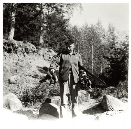 Baksidetext: Jens Harberg efter en lyckad morkulljakt 1955