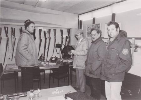 Baksidetext: Styrelsesammanträdet avslutat. Från vänster: Karl-Anders Lindholm, Nils Eriksson, Ingmar Mattsson, Birger Boman. Allen tog bilden våren 1983.