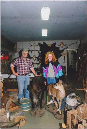 Intendent Luoma Raimo och Päivi Romdahl (?) hämtade vildsvin och rådjur till föreningen