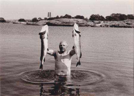 Baksidetext: Jens Harberg efter en lyckad gäddfångst i Björkör år 1986