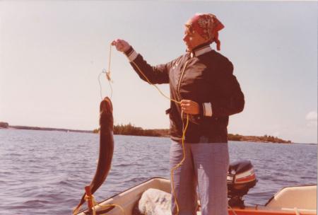 Baksidetext: Ann-Lis Harberg med en (?) gädda