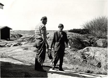 Baksidetext: Tv. Volter Stenroos, den ena av .. viltvårdare på Klåvskär 1970. Th. Pekka Granqvist