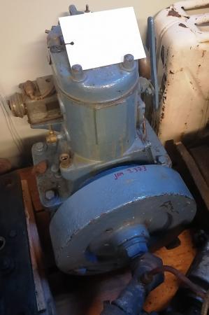 Inombordsmotor tillverkad av Ab Andros Oy i Åbo. Modell K10. 3 hästkrafter. Blåmålad.