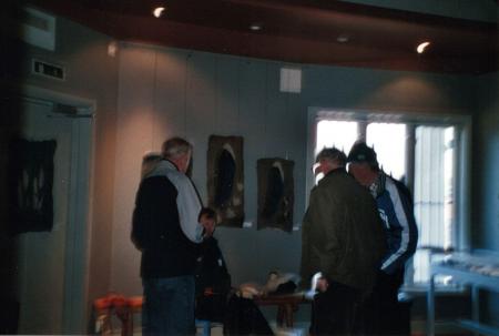 Färgfotografi på en grupp besökare på första jaktens dag på museet.