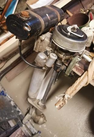 Utombordsmotor, tillverkad av British Seagull, England.